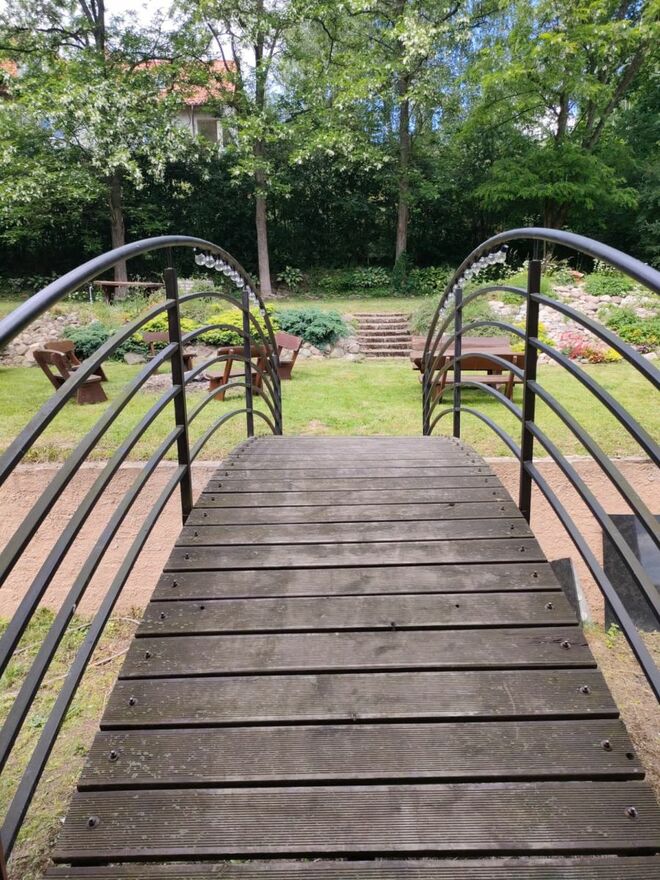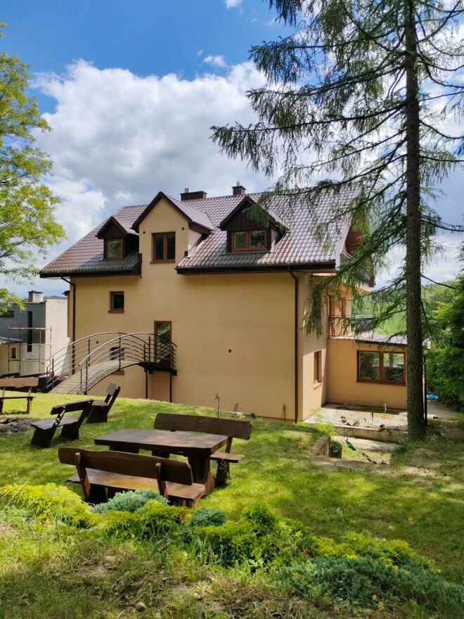 Ogród zagospodarowany, jest miejsce na ognisko i inne atrakcje, parking na ok. 12-14 samochodów.