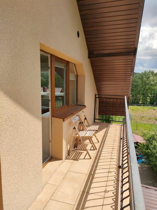 Hotel ogrzewany jest piecem na pelet, wodociąg gminny jak również własne ujęcie wody do podlewania ogrodu, kanalizacja